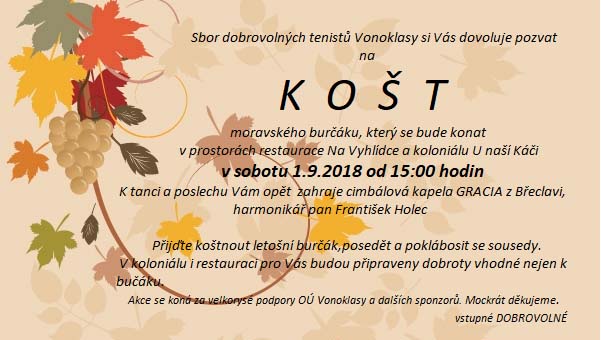 Pozvánka na Košt 1. 9. 2018