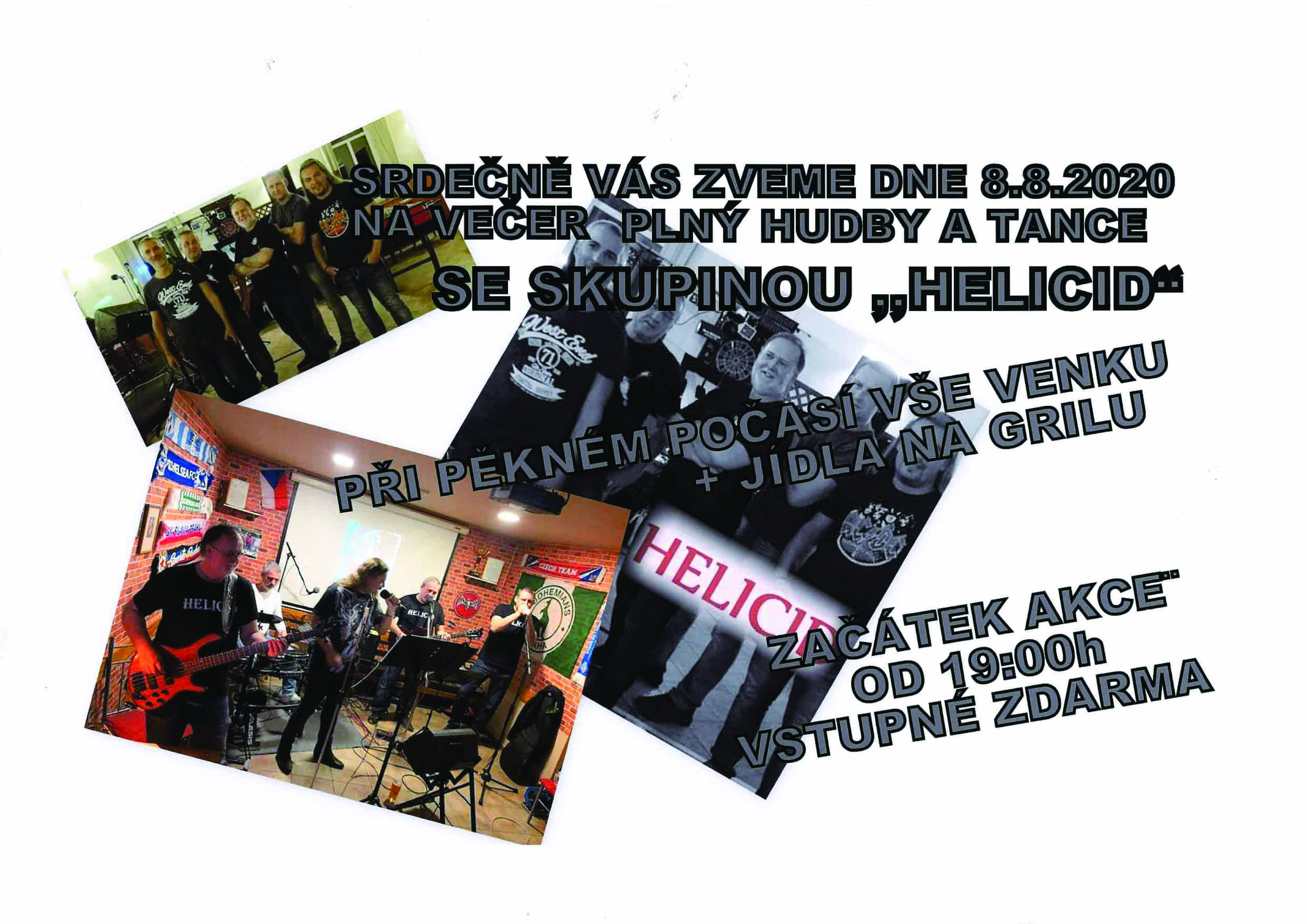 Pozvánka na večer hudby a tance s kapelou Helicid v sobotu 8. srpna 2020